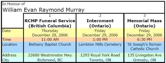 Sarah asked me to pass on the news that there is a memorial service planned in honour of Will for this coming Thursday (28 Dec), which will be held in B.C. The funeral is planned for the following day (Friday 29 Dec) and will be held in Ontario. More details will follow.